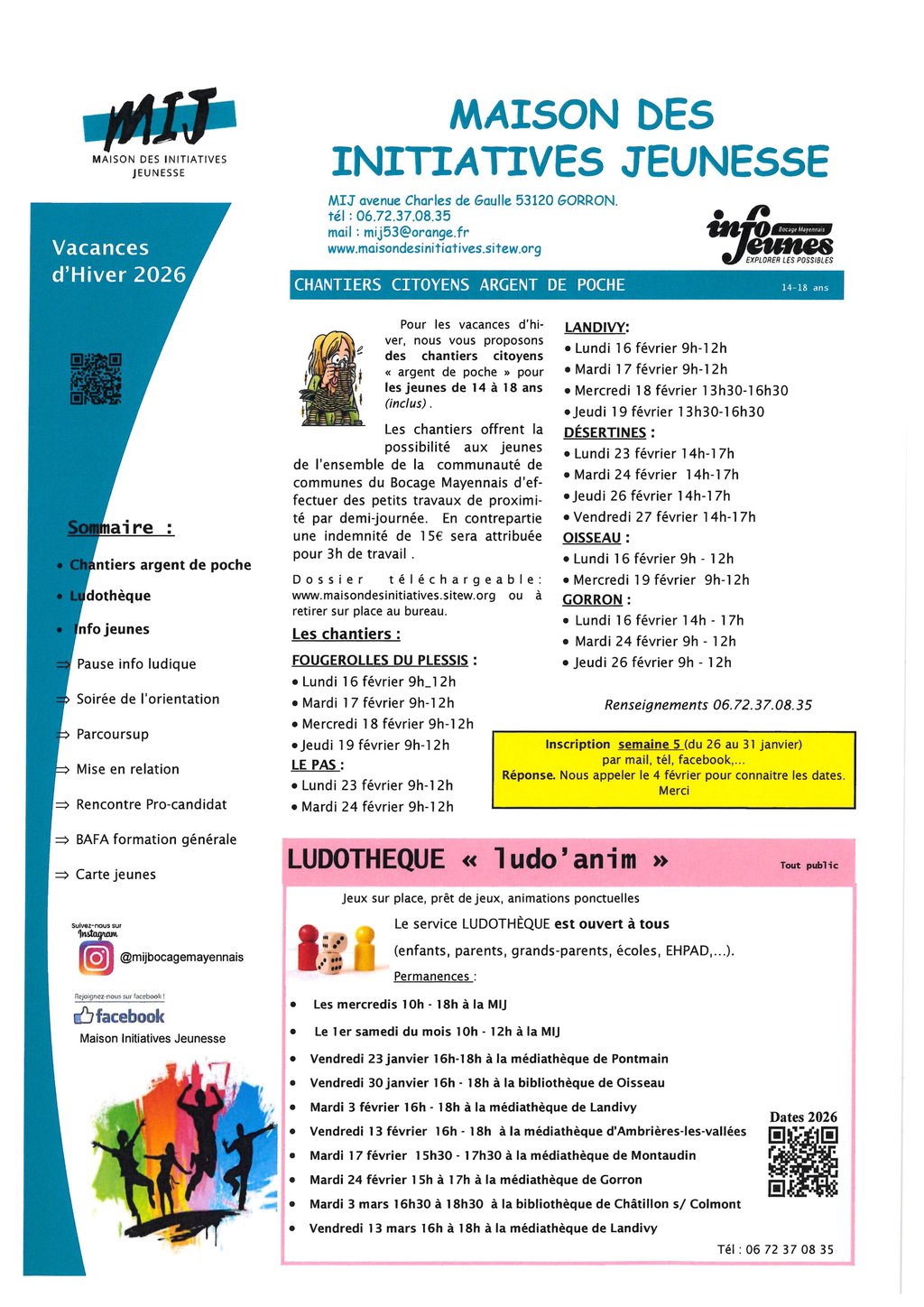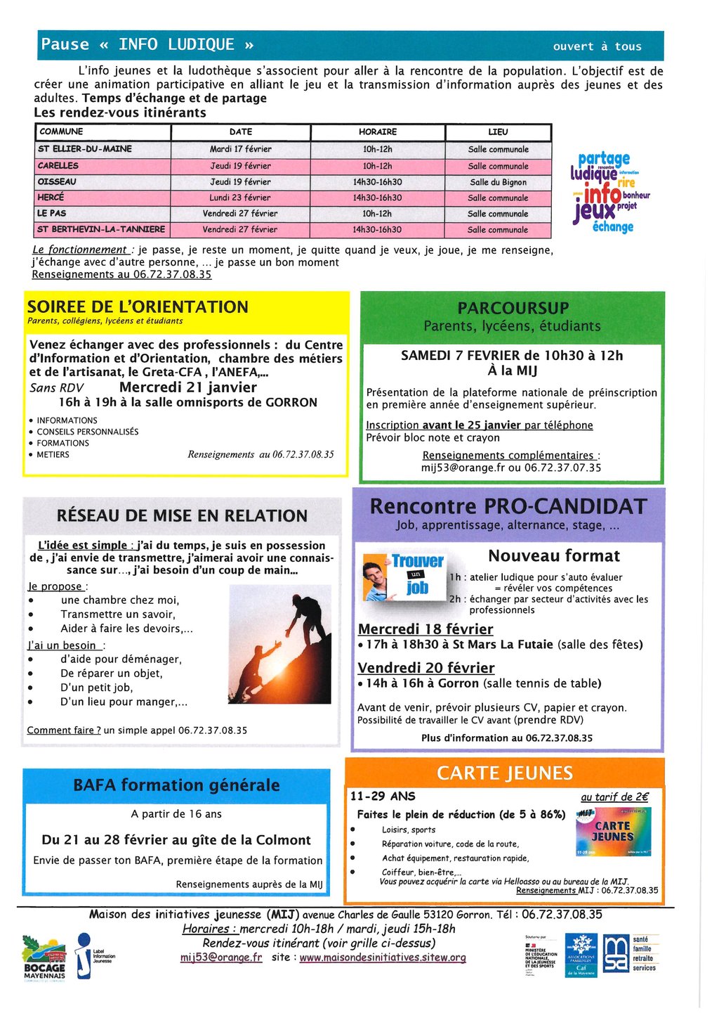 Les RDV de la MIJ (Maison des Initiatives Jeunesse) sur la Communauté de Communes du Bocage Mayennais.
