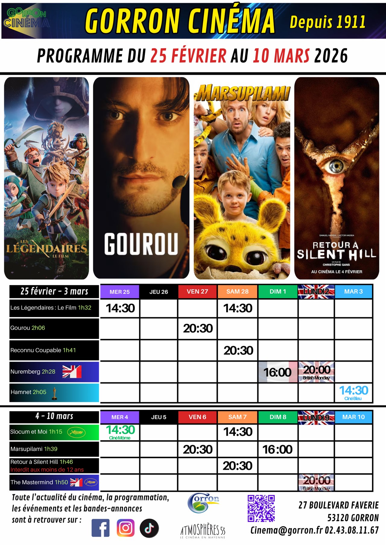 PROGRAMME CINEMA GORRON/DU 11 AU 24 FEVRIER 2026