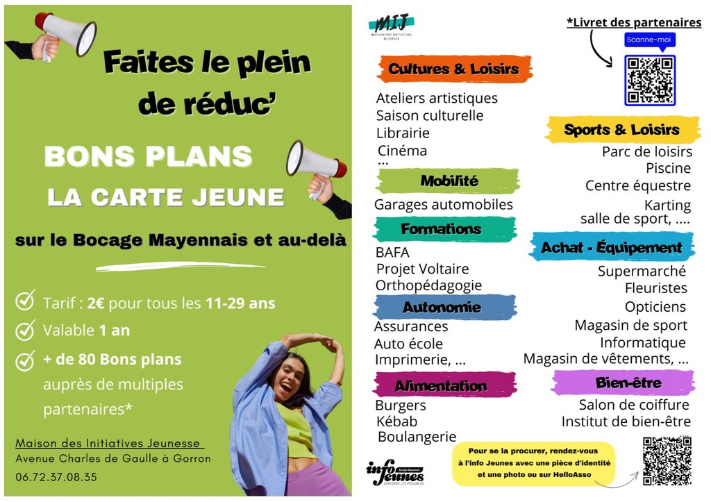 Pour obtenir la carte, 2 solutions soit par le biais de HelloAsso = https://www.helloasso.com/associations/mij-info-jeunes ou auprès des services de la MIJ.