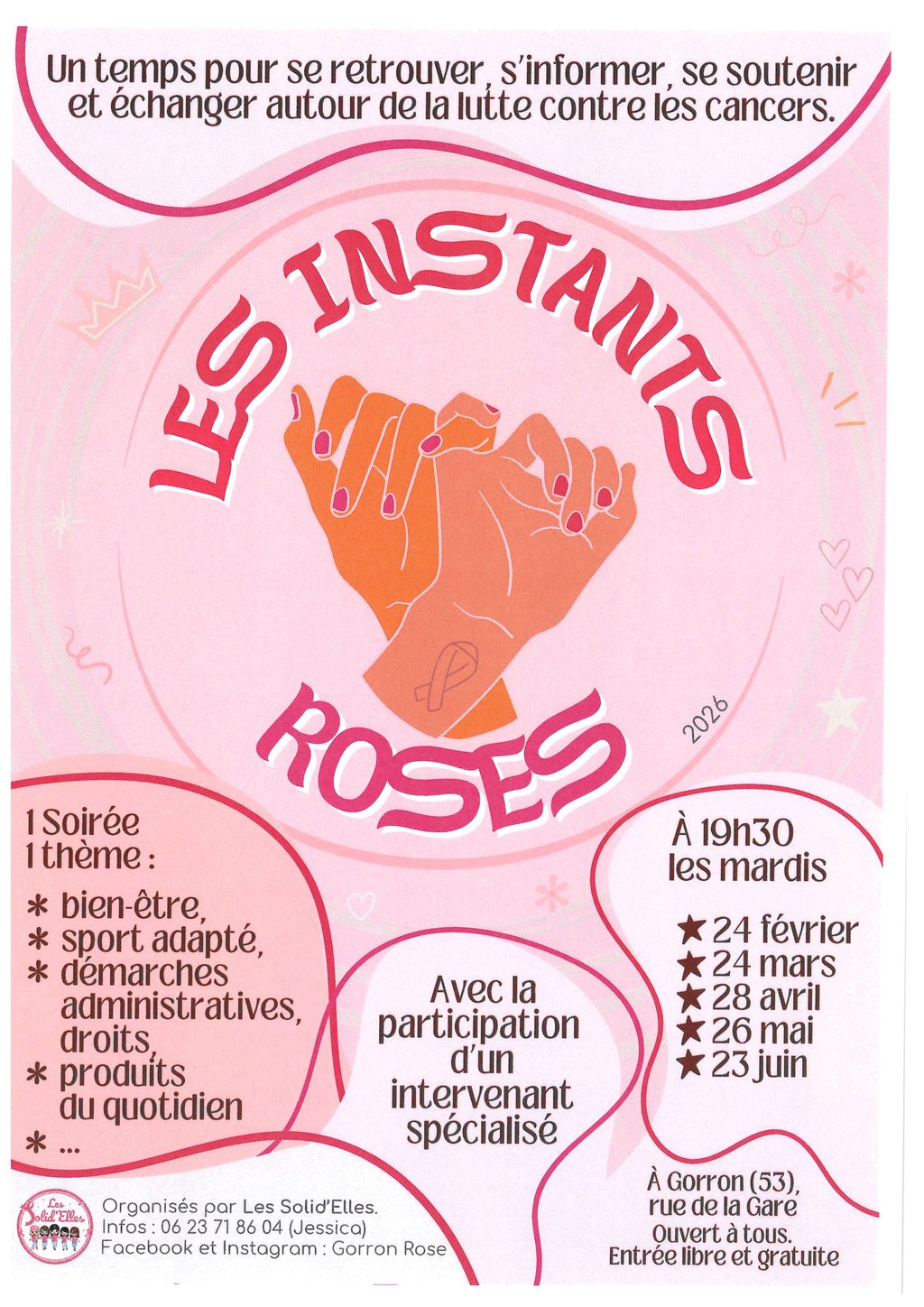 Les SolidâElles lancent Ă Gorron « Les Instants Roses ». Une sĂ©rie de cafĂ©s-rencontres mensuels, ouverts Ă toutes les personnes concernĂ©es par le cancer.
