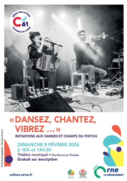 Dans le cadre de l'accueil du spectacle Ma Petite du mardi 10 février prochain, en partenariat avec C'61, Perrine Vrignault, chanteuse et accordéoniste du groupe Ma Petite, propose de vous initier aux danses traditionnelles poitevines ainsi qu'aux chants du Poitou.