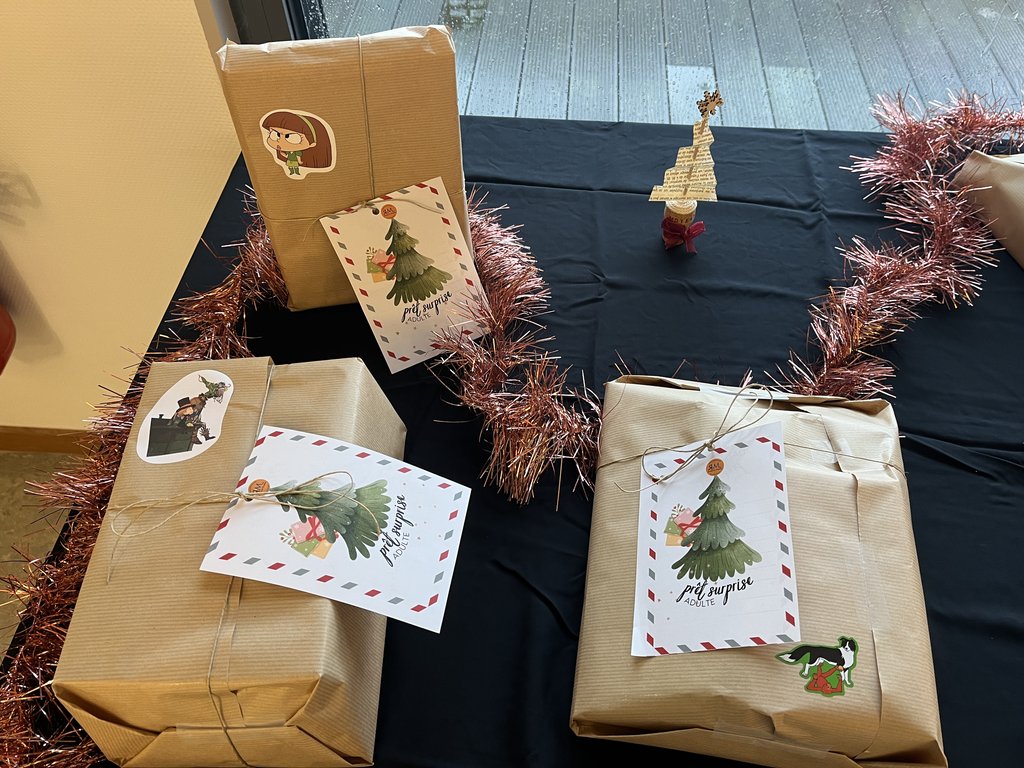 1- On sélectionne un paquet surprise adulte (avec une étiquette sapin) ou enfant (avec une étiquette père noël). Parfois, il y a des indices.